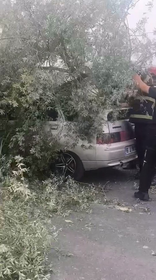 Bursa'nın İnegöl ilçesinde lodosun etkisiyle kökünden sökülen ağaç, park halindeki otomobilin üzerine devrildi.