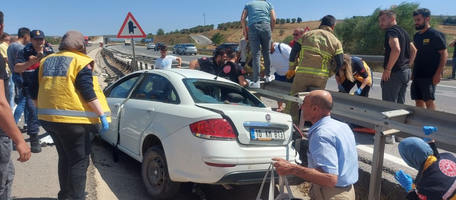 Araçta sıkışan sürücü Mehmet Yılmaz ile eşi Sabiha Yılmaz, Susurluk İtfaiyesi ekipleri tarafından kurtarıldı.
