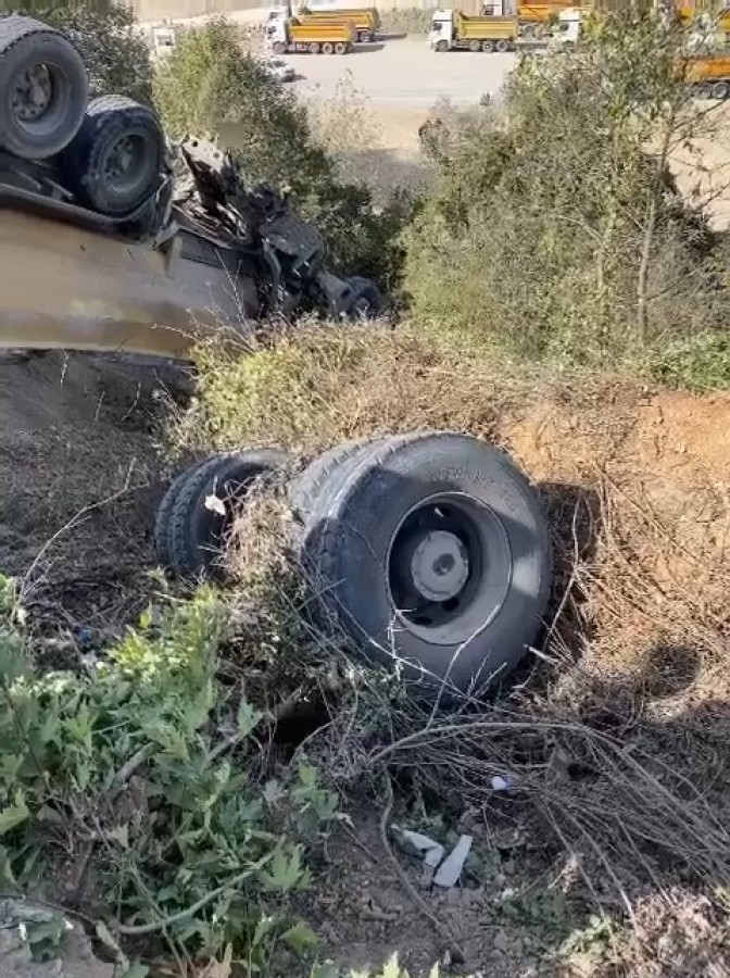 Kaza, merkez Nilüfer ilçesi Maksempınar Mahallesi mevkiinde meydana geldi. Bölgedeki hafriyat döküm sahasına giden bir inşaat firmasına ait hafriyat kamyonu viraja geldiği esnada kontrolden çıktı.