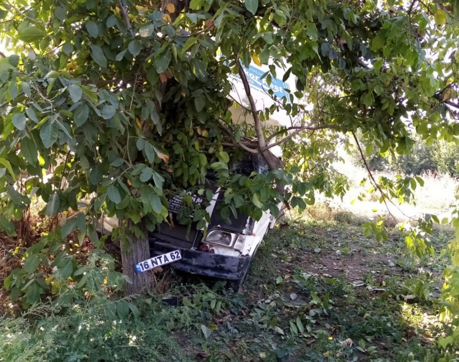 Mesudiye Mahallesinden Şibali Mahallesi istikametine seyir halinde olan Burak Güney (27) yönetimindeki 16 NTA 62 plakalı kamyonet, sürücüsünün kontrolünden çıkarak yolun solunda bulunan bahçeye uçtu. Ağaca çarparak durabilen kamyonetteki sürücü yaralandı. Çevredeki vatandaşlar tarafından araçtan çıkarılan yaralı sürücü haber verilmesi üzerine kaza yerine gelen 112 Acil Servis ambulansındaki sağlık ekiplerinin ilk müdahalesinin ardından ambulansla İnegöl Devlet Hastanesi Acil Servisine kaldırıldı. Sürücüye ehliyetsiz araç kullanmaktan 2 bin 699 TL cezai işlem uygulandı.
