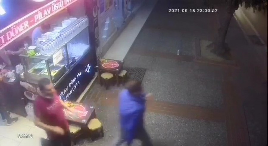 Yaşanan bu anlar ise iş yerinin güvenlik kamerasına saniye saniye yansıdı.