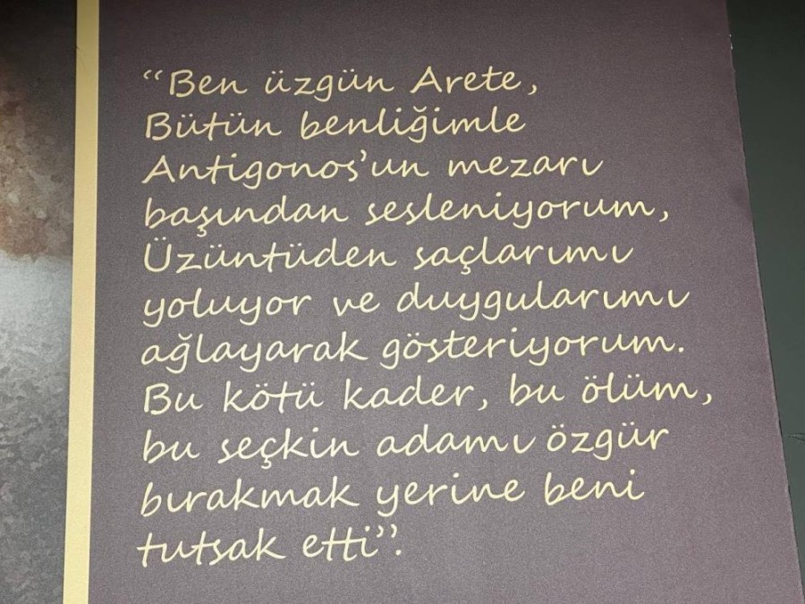 Yeni açılacak arkeoloji müzesinin en çok dikkat çeken eseri ise Büyük İskender'in generallerinden biri olan Antigonos'a ait lahit. İhlas Haber Ajansı tarafından ilk kez görüntülenen lahitin üzerindeki Roma harfleriyle yazılan duygusal mesaj ise herkesi şok edecek cinsten. Arkeologlar tarafından çevirisi yapılan 2 bin 500 yıllık mesajda şu ifadeler yer alıyor;