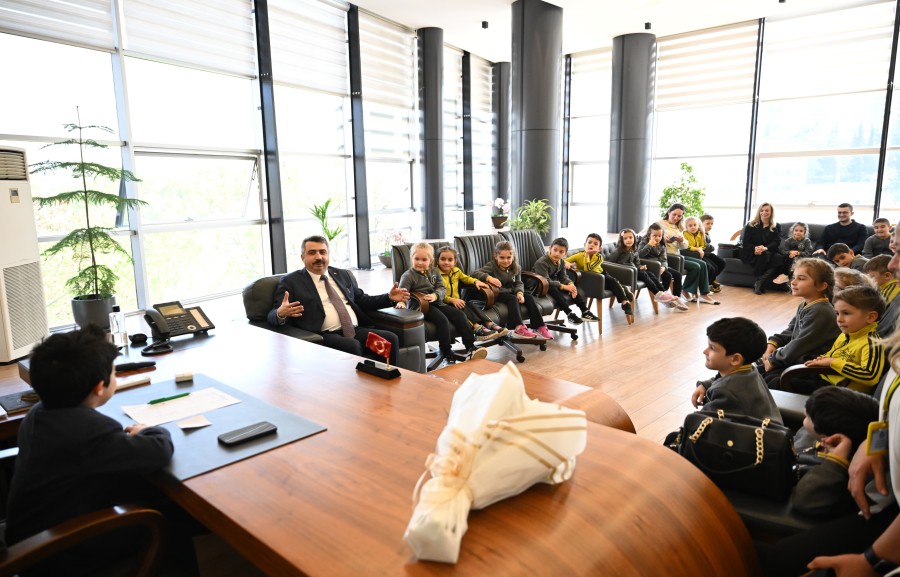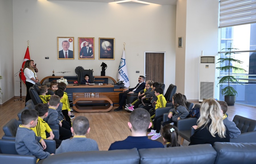 Yıldırım Belediye Başkanı Oktay Yılmaz, Bilsoy Anaokulu'nda eğitim gören öğrencileri makamında ağırladı. 23 Nisan Ulusal Egemenlik ve Çocuk Bayramı etkinlikleri kapsamında düzenlenen ve geleneksel hale gelen, çocukların temsili olarak yönetici koltuğuna oturmaları töreninde, kısa sürede olsa Yıldırım Belediye Başkanlığı koltuğunu emanet alan çocuklar, istek ve temennilerini Başkan Oktay Yılmaz'a ilettiler.
