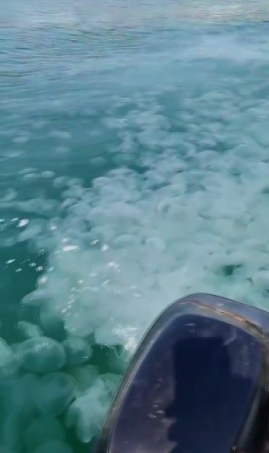 Gemlik'in Küçükkumla Mahallesi'ndeki sahil boyunda denizanası istilası yaşanıyor. On binlerce denizanası, sahili şeridini doldururken, o anlar tekneyle suda ilerleyen balıkçıkların kamerasına yansıdı. Bazı vatandaşlar denizanası artışının en önemli sebebinin deniz kirliliğinin yanı sıra kaçak avlanmalar olabileceğine dikkat çekti.