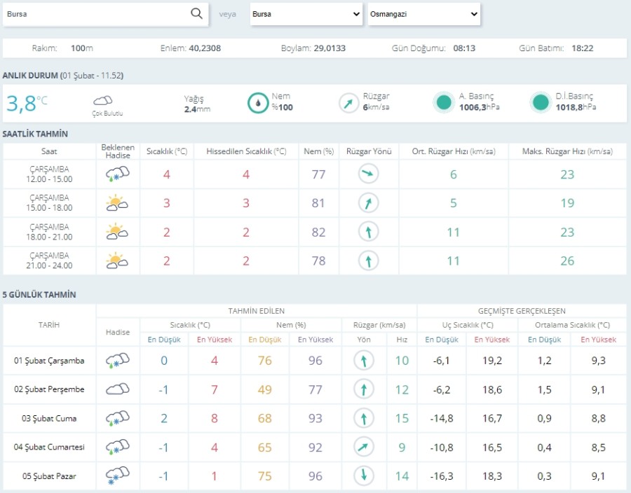 Meteoroloji'nin hava tahminine göre Bursa ile birlikte, Hakkari, Van, Bitlis, Şırnak, Muş, Ağrı, Iğdır, Kars, Ardahan, Erzurum, Bayburt, Bingöl, Erzincan, Tunceli, Elazığ, Malatya, Sivas, Tokat, Amasya, Çorum, Yozgat, Kayseri, Niğde, Karaman, Konya, Aksaray, Nevşehir, Kırşehir, Kırıkkale, Çorum, Çankırı, Kastamonu, Bartın, Zonguldak, Düzce, Ankara, Eskişehir, Karabük, Bolu,Kütahya ve Bilecik illeri için kar yağışı uyarısı yapıldı.