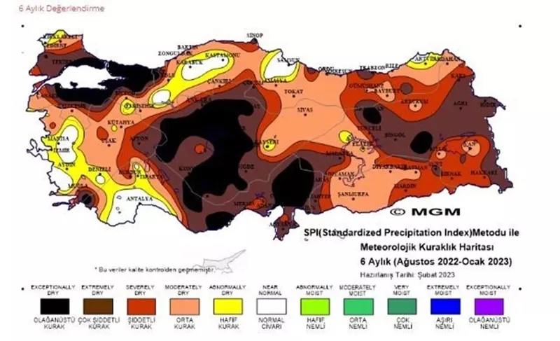 Çevre, Şehircilik ve İklim Değişikliği Bakanlığı Meteoroloji Genel Müdürlüğü, ülke genelinde güncel kuraklık haritalarını yayımladı.