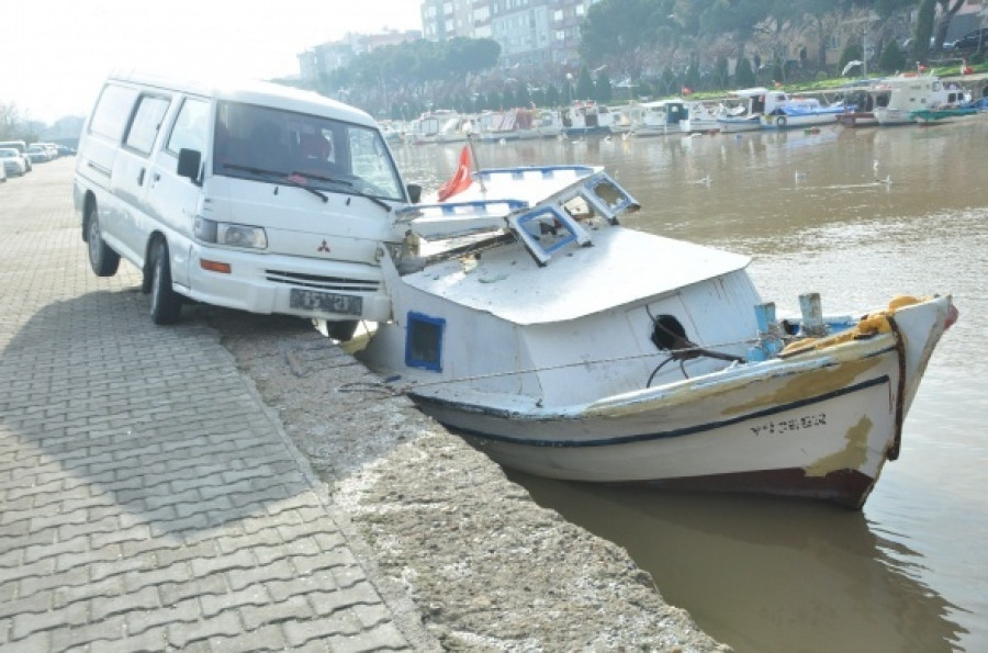 Çanakkale'de meydana gelen trafik kazasında bir minibüs Sarıçay rıhtımında bağlı bulunan tekneye çarparak çaya düşmekten son anda kurtuldu. Görenleri şaşkına çeviren kaza, bu sabah saatlerinde meydana geldi. İddiaya göre, 16 ED 899 plakalı minibüsün sürücüsü Sarıçay kenarında ilerlerken önünde seyir halinde olan traktöre çarpmamak için aracının direksiyonunu sol tarafa doğru kırdı. Bu sırada aracın sol tekerleği rıhtımda bağlı bulunan teknenin kamera kısmının üzerine çıktı.