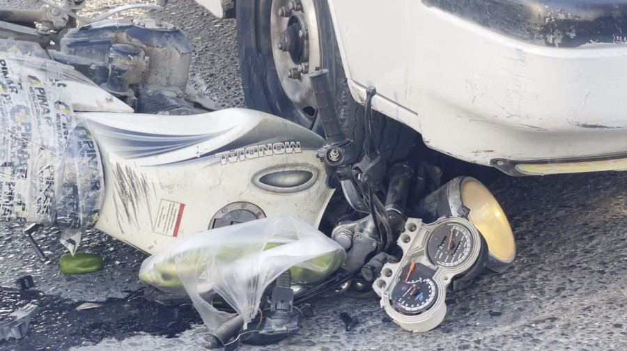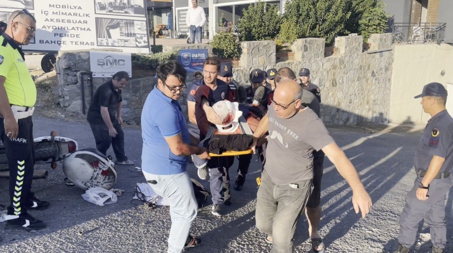 Minibüsün tekerleği altında kalan motosiklet kullanılmaz hale gelirken 70 yaşındaki Hasan Yaşar da ağır yaralandı.