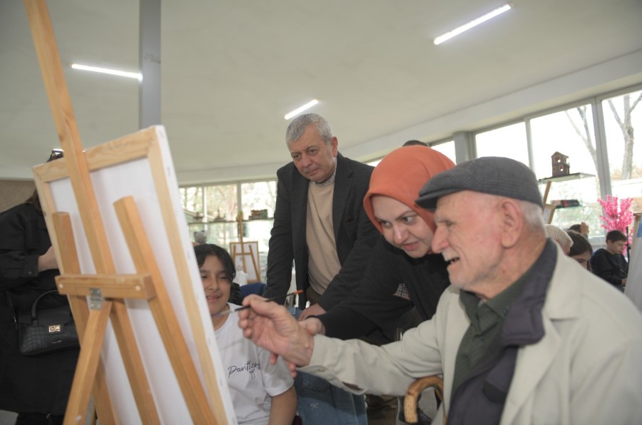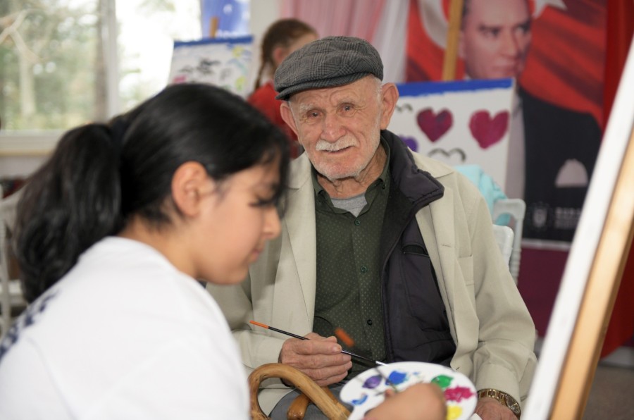 Osmangazi Belediyesi Hüdavendigar Yetenek Evi Resim Sınıfı öğrencileri huzur evi sakinleriyle bir araya gelerek resim yaptı.