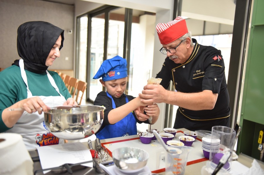 Yıldırım Belediye Başkanı Oktay Yılmaz, Molla Yegan Çocuk Üniversitesi mutfak atölyesindeki çocuklarla birlikte mutfağa girerek tatlı yaptı.