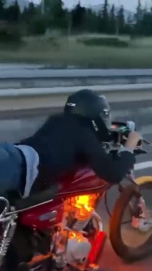 Motosikleti bir süre bu şekilde kullanan ve zaman zaman hızını 125 kilometreye kadar çıkaran şahsı görenler o anları görüntüledi.
