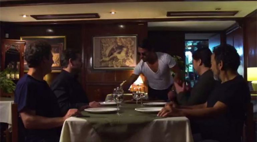Nusret Gökçe ekibe restoranda et servis ediyor ve meşhur hareketini yapıyor.