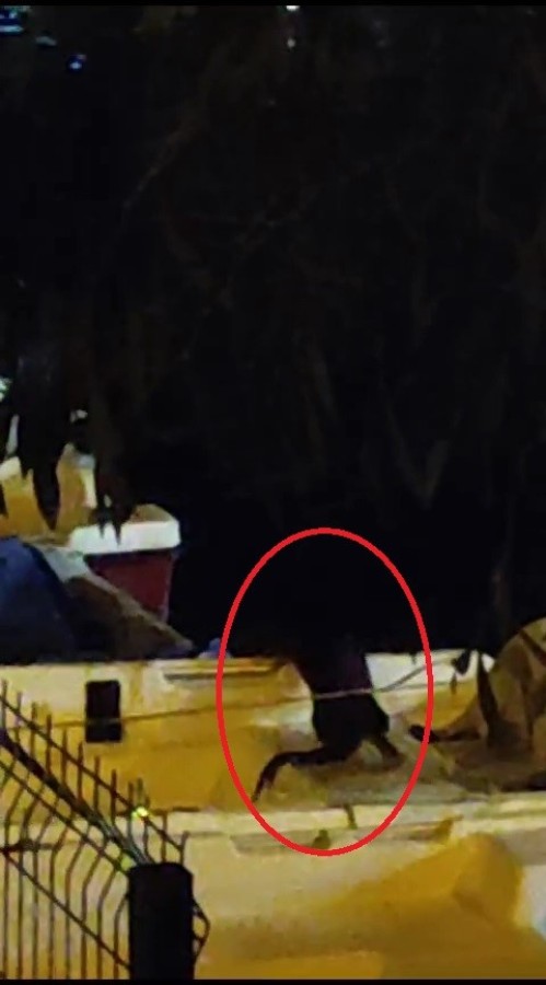 Gece saatlerinde kayalıklara çıkan, daha sonra iskeleye bağlı teknelerin üzerinde gezen su samuru, gecenin karanlığında gözlerden kayboldu.