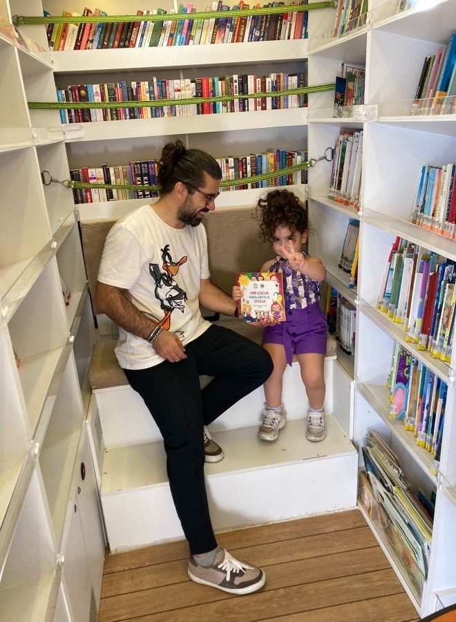Mudanya Belediye Başkanı Deniz Dalgıç da Nilüfer Belediyesi Gezici Kütüphane'yi ziyaret ederek, kütüphanenin faaliyetleri hakkında bilgi aldı ve Nilüfer Belediyesi'nin yayınlarını inceledi.