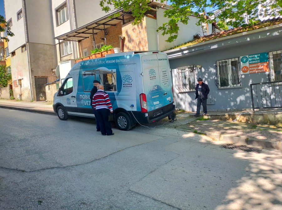 Nilüfer Belediyesi ayrıca mobil vezne aracılığıyla vatandaşların ayağına giderek ödemeleri kolaylıkla yapmalarını sağlıyor. 3 adet mobil vezne her gün farklı mahallelere giderek isteyen vatandaşların emlak ödemelerini yapmalarına imkan verecek.