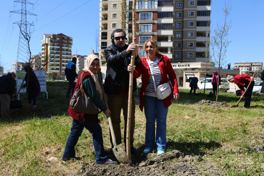 Nilüfer Belediyesi, gönüllülerle birlikte 23 Nisan Mahallesi'nde 134 fidanı toprakla buluşturdu.