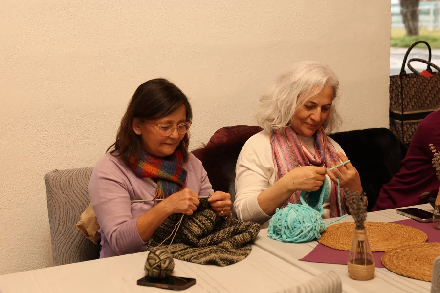 Gülözü Mahallesi'nden kadınlar ve çocukların da katıldığı etkinlikte, "Bursa Bülbülü" filmi izlenirken kadınlar yeni iyilik hareketleri için örgü örmeyi sürdürdü.