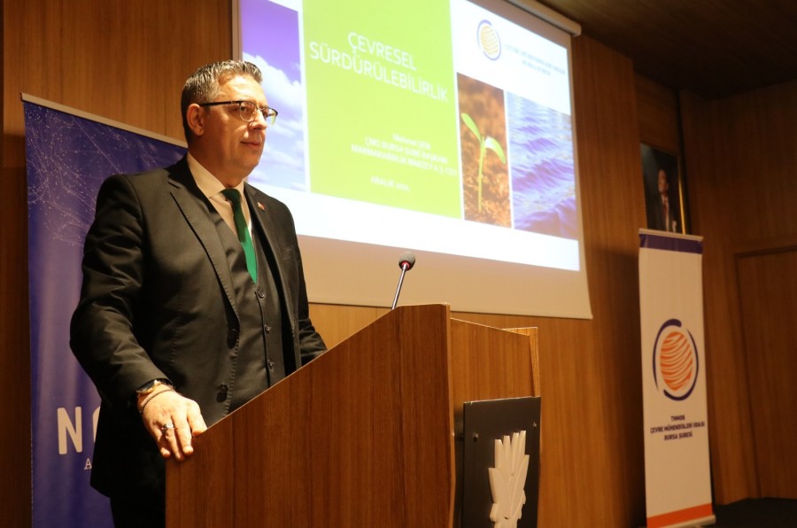 Etkinliğin son oturumunda ise 'Çevresel Sürdürülebilirlik' konusunda bir sunum gerçekleştiren ÇMO Bursa Şube Başkanı, Çevre Yüksek Mühendisi Mehmet Şen, "Sürdürülebilirlik; Çevresel, Sosyal ve Ekonomik Kalkınmanın bir arada gerçekleşmesi yaklaşımıdır. Şirketlerin doğa üzerindeki etkilerini minimuma indirmek ve faaliyetlerine devam edebilmek için yapılması gereken çalışmalar bütünüdür. Bunu sağlayabilmek adına su ve karbon ayak izlerinin azaltılması gerekmektedir. Bunlar için; enerji verimliliği, geri dönüşüm, ağaç dikmek, yenilenebilir enerji kullanmak, karbon salınımı düşük ürün ve hizmetleri tercih etmek, toplu ulaşımları kullanmak ve yakıt tercihleri değiştirmek konuları önem arz etmektedir. Çevresel sürdürülebilirlik iş dünyasında değer yaratabilecek ve uzun vadeli başarı sağlayabilecektir" şeklinde konuşan Şen, "Su ve Karbon Ayak izlerini azalt, gelecek nesilleri yaşat" diyerek sunumunu sonlandırdı.
