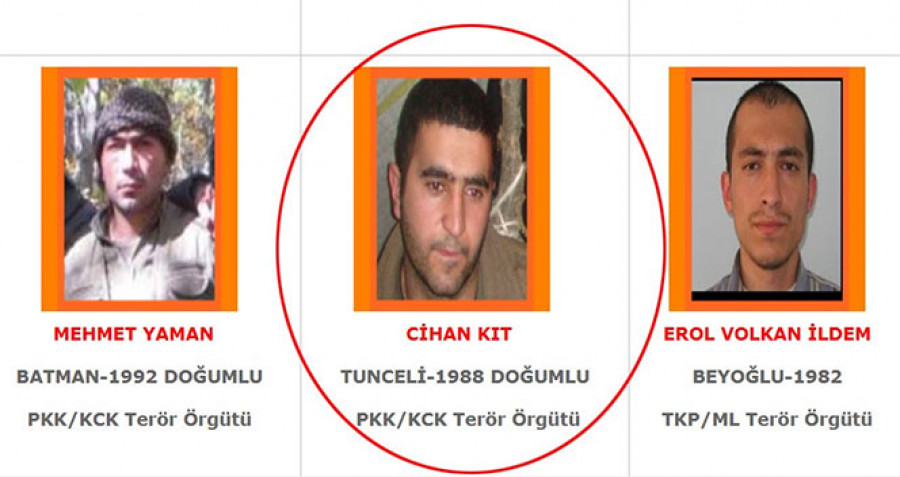 Tunceli'nin Pülümür ilçesi kırsalında öldürülen 7 teröristten birinin sözde Nazımiye gücü sorumlusu Mahir kod adlı Cihan Kıt olduğu ve aranan teröristler listesinde 600 bin TL ödüllü turuncu kategoride yer aldığı tespit edildi.Teröristin boynunda ve elinde haç işaretinin çıktığı öğrenildi.