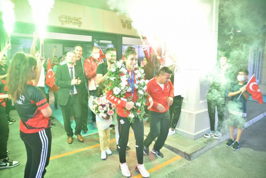 Tokyo 2020 Olimpiyat Oyunları'nda 57 kiloda bronz madalya kazanarak bir ilki başaran Bursa Büyükşehir Belediyespor'un milli taekwondocusu Hatice Kübra İlgün, yurda döndü. İstanbul Havalimanı'nda başta ailesi olmak üzere Büyükşehir Belediyespor Başkanı Gökhan Dinçer, Bursa Gençlik ve Spor İl Müdürü Salih Başparmak, İstanbul Gençlik ve Spor İl Müdürü Burhanettin Hacıcaferoğlu ve kulüp yöneticileriyle birlikte kalabalık bir grup tarafından karşılanan Milli Sporcu, çiçekler, meşaleler ve tezahüratlar eşliğinde çıkışa geldi. Büyük bir coşkunun yaşandığı karşılamada, Bursa'ya ilk Olimpiyat madalyasını kazandıran Hatice Kübra İlgün sevincini ailesi ve karşılamaya gelen kalabalıkla paylaştı.