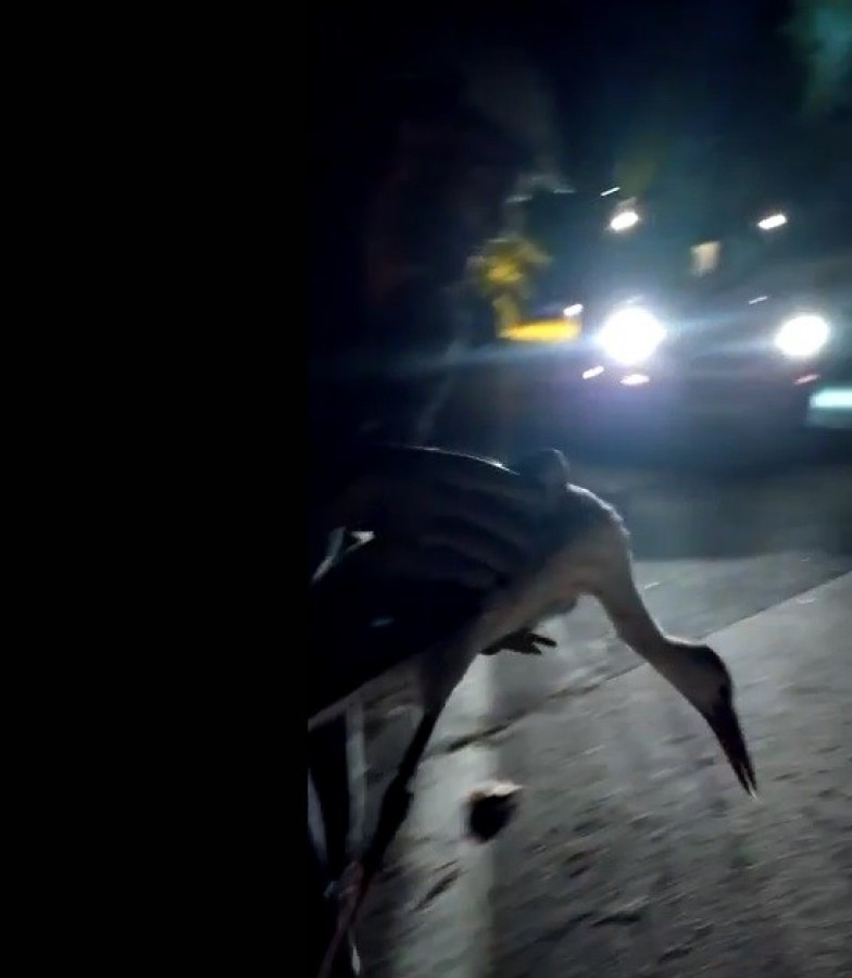 Bursa'da gece mesaisinde olan UEDAŞ ekipleri, yol kenarında hareketsiz halde buldukları leyleğin yardımına yetişti.