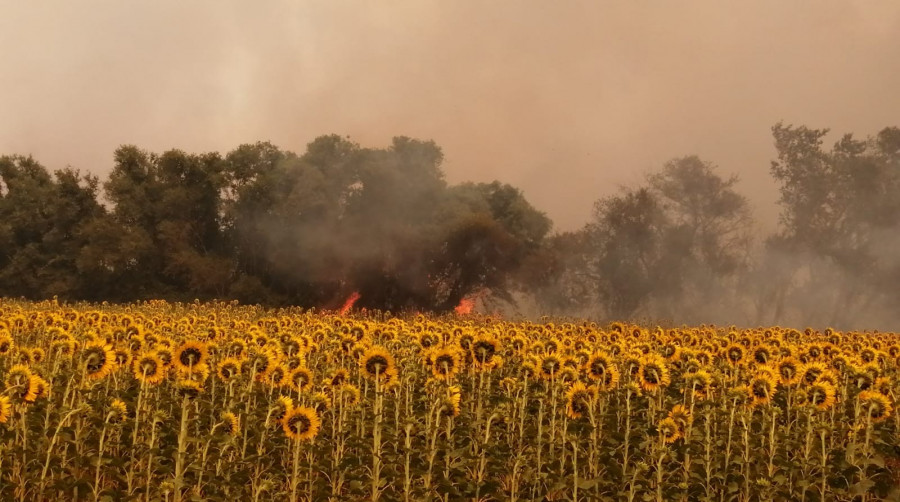 Yangın söndürme çalışmaları sürüyor. Yangın köyün yakınlarındaki ayçiçeği tarlasına da sıçrarken, tarım alanlarında da zarar olduğu öğrenildi.