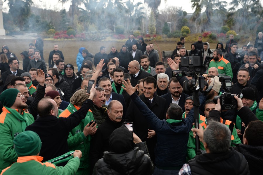 AK Parti Osmangazi İlçe Başkanı Adnan Kurtuluş, MHP Osmangazi İlçe Başkanı Kerim Gürsel Çelebi'nin katıldığı ek protokol imza töreninde, belediye işçileri Başkan Dündar'a sevgi gösterisinde bulundu.