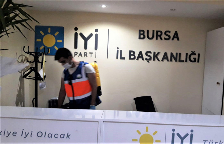 Küresel salgın son günlerde Türkiye'de yeniden artış gösterirken, sürecin başından itibaren örnek çalışmalara imza atan Osmangazi Belediyesi, mücadelesini ilk günkü ciddiyetiyle sürdürüyor. Salgının yayılmasını önlemek amacıyla 13 Mart'tan itibaren yoğun mesai harcayan belediye ekipleri, başta halka açık alanlar olmak üzere, resmi kurum ve ibadethanelerde temizlik ve dezenfeksiyon çalışmalarını büyük bir titizlikle gerçekleştiriyor. Belirlenen periyotlarda düzenli olarak dezenfekte çalışması yapan Temizlik İşleri Müdürlüğü ekipleri, Osmangazi'de bulunan siyasi partilerin il ve ilçe binalarını dezenfekte etti.