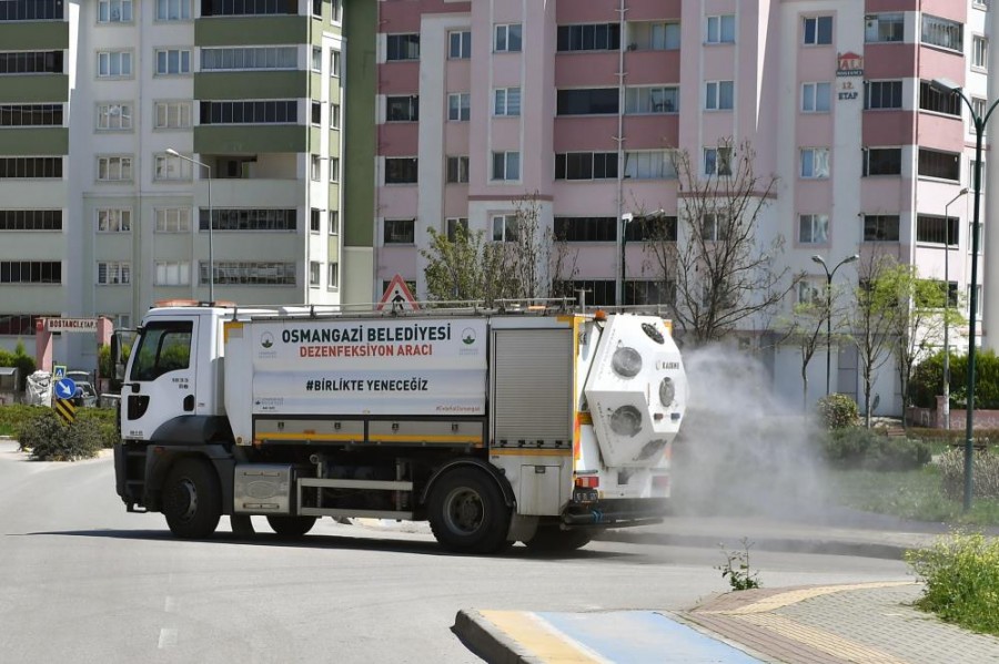 Türkiye'de korona virüs vakasının görüldüğü ilk günden itibaren salgının yayılmaması için olağanüstü bir çaba ortaya koyan Osmangazi Belediyesi, ilçenin dört bir yanında aralıksız dezenfeksiyon çalışması gerçekleştiriyor.
