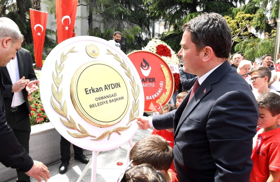 CHP Osmangazi İlçe Başkanı Cengiz Çelikten ve meclis üyelerinin de katıldığı törende konuşan Osmangazi Belediye Başkanı Erkan Aydın, "Tam 104 yıl önce Türkiye Büyük Millet Meclisi'ni açarak büyük kurtuluş savaşını o meclisten idare ederek savaşta bile kapatmayarak ardından Cumhuriyeti ilan edip tam bağımsızlığımızı bizlere armağan eden Büyük Önder Mustafa Kemal Atatürk, silah arkadaşları ve aziz şehitlerimizi saygı, minnet ve rahmetle anıyorum. Ruhları şad olsun. Büyük önder, o gün bir vizyon çizdi. Dünyada hiçbir ülkede olmayıp tek olan bir bayramı çocuklara hediye etti. 19 Mayıs'ı da gençlere hediye etti. Bunda büyük bir ileri görüşlülük, vizyon ve geleceğimizi emanet ettiği çocukların ne kadar değerli olduklarını bilmeleri ve ona göre yetiştirmemiz gerektiğini asla unutmamamız için ilan etti. O yüzden bu bayramda çocuklarımızın, yani geleceğimizin ne kadar değerli olduğunu bir kez daha hatırladık. Umarım onlarla birlikte muasır medeniyetler seviyesine ulaşma arzusunu bizlere emanet edilen bu görevi hep birlikte daha iyi yapacağız. 23 Nisan Ulusal Egemenlik ve Çocuk Bayramı'nı kutluyorum" diye konuştu.