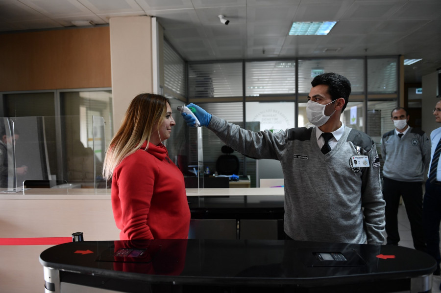Bursa'nın en kalabalık ilçesinde halk sağlığı için korona virüse karşı çalışmalara aralıksız devam eden Osmangazi Belediyesi, hem vatandaşların hem de belediye personelinin sağlığı için belediye hizmet binası içerisindeki tedbirleri arttırdı. Alınan tedbirler kapsamında belediyeye gelen vatandaşların bina girişinde ateşi ölçülüyor. Ayrıca vatandaşların daha hijyenik ortamda işlemlerini yapılabilmesi adına sosyal mesafe tedbirleri uygulanıyor. Belediyedeki bütün işlemler, binanın giriş katındaki hizmet masalarından gerçekleştiriliyor. Belediye görevlilerinden sıra numarasını alan vatandaşların herhangi bir yere temas etmemesi sağlanıyor. Sırası gelen vatandaşın işlemini gerçekleştirirken, belediye personeliyle arasındaki sosyal mesafenin korunmasına da özen gösteriliyor.