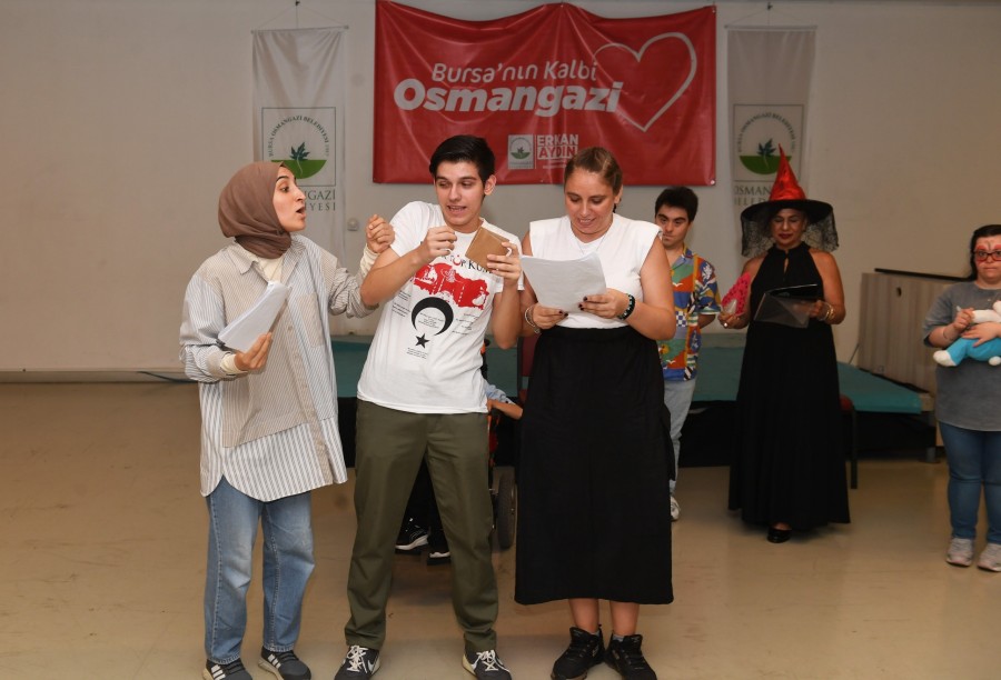 Osmangazi Kent Konseyi Engelliler Meclisi'nin engelli bireylerine çeşitli eğitimler verdiklerini ifade eden Osmangazi Kent Konseyi Engelliler Meclisi Öğretmeni Huriye Ece Küçük, "Verdiğimiz eğitimlerde engelli bireylerin kendi potansiyelinin farkına varmasını hedefliyoruz. Biz burada 3 Aralık Dünya Engelliler Günü'ne hazırlanıyoruz. Bu özel günü hazırladığımız tiyatro oyunuyla büyük bir coşkuyla kutlayacağız. Oyunumuzla topluma güzel mesajlar vereceğiz. Provalarımız devam ediyor. Engelli bireyler 6 aylık bir çalışmanın sonunda herkesin çok beğeneceği oyunu 3 Aralık Dünya Engelliler Günü'nde sahneleyecek. Oyunumuzun ismini sır gibi saklıyoruz. Biz bu defa kendi içimizde farkındalık olayını çözelim herkese kapılarımızı açalım dedik ve engelli bireylerle burada olmak isteyen bütün bireylere kapılarımızı açtık. Engelli ve engelsiz ayırt etmeden oyumuzda herkese yer verdik" dedi.