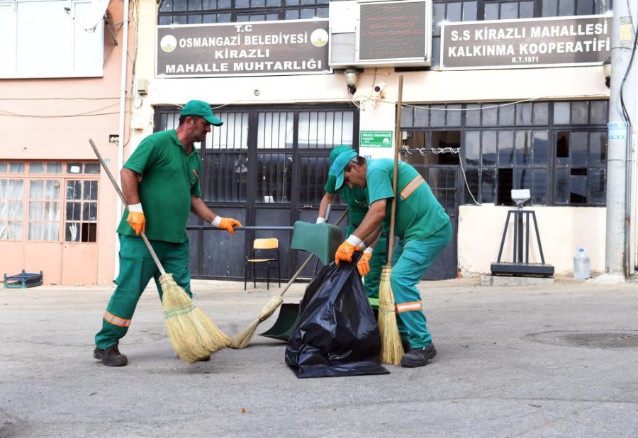 Temizlik İşleri Müdürlüğüne bağlı 340 personel, her gün 8 vakumlu süpürge aracı ile ilçedeki meydan, cadde ve nüfus yoğunluğunun fazla olduğu alanları süpürüyor. Bu hizmetin yanında, mahallelerde oluşturulan mahalle ekipleriyle de ilçe merkezindeki sokakların temizliği periyodik olarak yapılıyor. Ayrıca süpürgeci ekipleri, Osmangazi'nin ova ve dağ bölgesindeki kırsal mahallelerde düzenli olarak süpürme çalışması gerçekleştiriyor.