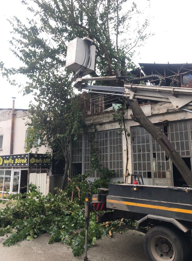 Ekipler, ağaçlarda hasar gören ve tehlike saçan dalları da kesti.