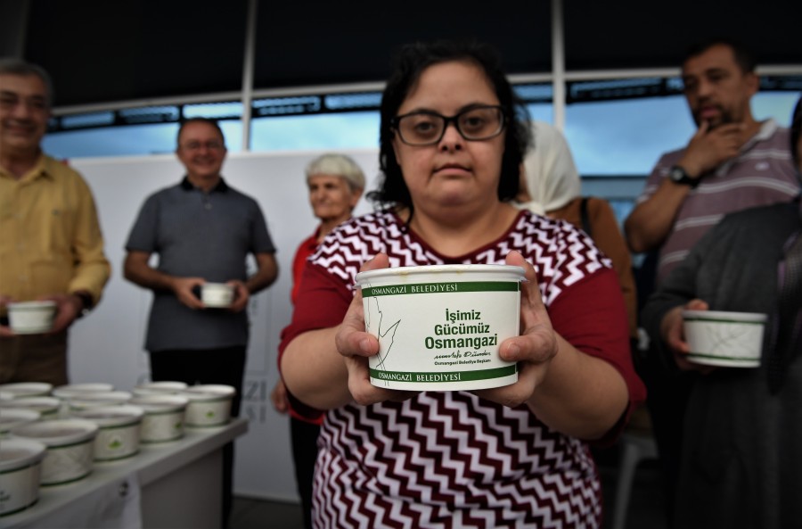 Osmangazi Kent Konseyi'nin düzenlediği aşure ikramı programında engelliler kendi elleriyle aşure dağıttı.