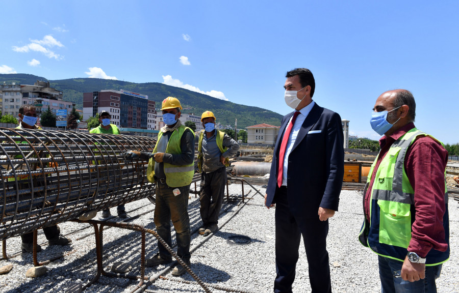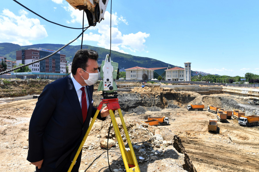 Osmangazi Meydanı şantiyesinde incelemelerde bulunan Osmangazi Belediye Başkanı Mustafa Dündar, Bursa'ya yakışan bir meydan kazandırmak için çalışmaları tüm hızıyla sürdürdüklerini belirtti. Pandemi sürecinin yatırımları durdurmadığına dikkat çeken Başkan Dündar, "Osmangazi Belediyesi olarak 13 Mart'tan itibaren bir yandan koronavirüs ile mücadele ederken, diğer yandan yatırımlarımızı da sürdürdük. Osmangazi Meydanı, Bursa'nın büyük bir projesi. Bursa'nın merkezinde 2000 araç kapasiteli 4 katlı kapalı otoparkı olan bir meydan inşa ediyoruz. Fore kazık ve hafriyat çalışmaları devam ediyor. Meydanın temeline 19 ila 29 metre uzunluğunda fore kazıklar çakıyoruz. 630 fore kazıktan çakılması gereken 140 tane kaldı. Çevre güvenliğini sağlayarak hafriyat çalışmaları da başladı. Şu anda Ankara Yolu üzerinden 16 metre yerin altına indik. Hafriyat çalışmalarının ardından betonarme çalışmalara başlayacağız" dedi.