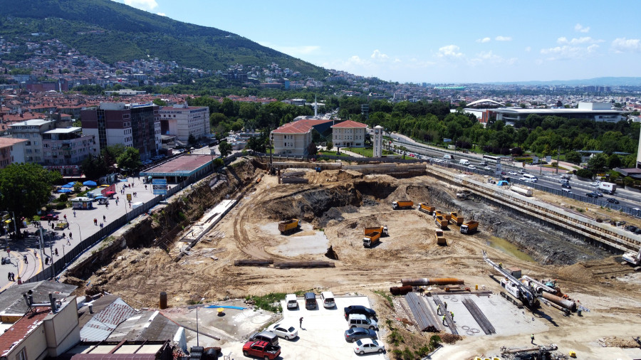 Bursa'nın en büyük meydanı olacak Osmangazi Meydanı'ndaki çalışmalar bütün hızıyla devam ediyor. Osmangazi Belediyesi tarafından inşa edilen meydanın hafriyat çalışmalarında, Ankara Yolu'ndan 16 metre yerin altına inildi.