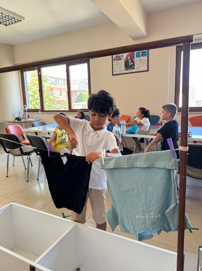 Gündelik Yaşam Becerileri Atölyesi ile çocuklara hayatı öğrettiklerini ifade eden eğitmen Neşe Öztürk, "Verdiğimiz eğitimlerle çocukların öz bakım becerilerinin gelişmesini sağlıyoruz. Burada çocuklara günlük yaşantılarında ihtiyaç duyacakları her şeyi öğretiyoruz. Bunun içinde kıyafet ütüleme, katlama, çamaşır asma ve nevresim geçirme gibi işler de var. Çocukları, öz bakımlarını kendilerini yapar hale getirmeye çalıştık. Burada çocuklar kısa dönemde çok güzel şeyler öğrendi. Buraya geldiğinde öz bakım becerisini hiç bilmeyen çocuklar vardı. Biz burada verdiğimiz eğitimlerle onlara ihtiyaç duyduğu her şeyi öğrettik. Burada 1. ve 4. sınıf arasındaki çocuklara eğitim veriyoruz. Burada çocuklar çok mutlu" dedi.
