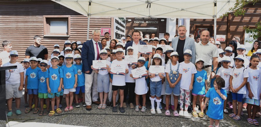 Osmangazi Belediyesi tarafından düzenlenen yaz spor okullarının yüzme kursunu başarıyla tamamlayan öğrenciler, sertifikalarını Osmangazi Belediye Başkanı Erkan Aydın'ın elinden aldı.