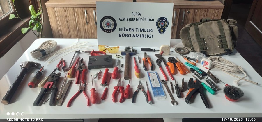 Mağdur adamın imdadına yetişen Bursa Asayiş Şube Müdürlüğü, Güven Timleri Amirliğine bağlı ekipler, inceledikleri güvenlik kamerasında çok sayıda suç kaydı bulunan S.K ve M.K'yı olduğunu tespit etti. Polis ekipleri adım adım takip ettiği iki şüpheliyi düzenlendikleri operasyonla yakalamayı başardı. Çalınan malzemeleri de bulan ekipler gerekli işlemlerin ardından mağdur olan Fatih S.'ye teslim etti.