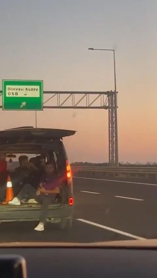 Canını hiçe sayarak bagajda yolculuk yapan kişi, ayaklarını araçtan sarkıtarak ne kendini, ne de çevredekilerin canını düşündü.