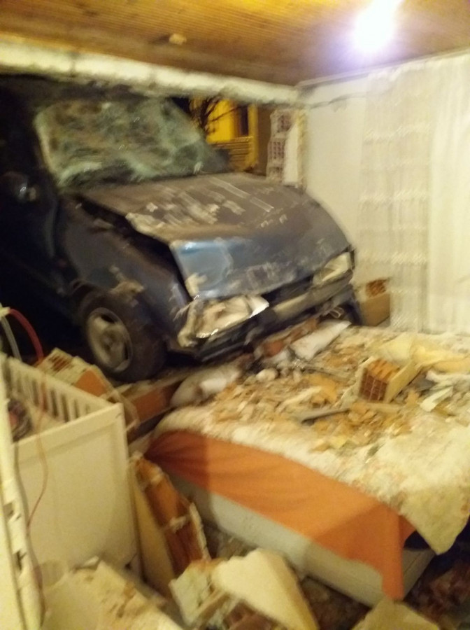 Kazaya karışan araç çekici yardımı ile girdiği yatak odasından kaldırırken, polis ekipleri kaza ile ilgili inceleme başlattı.