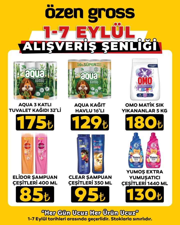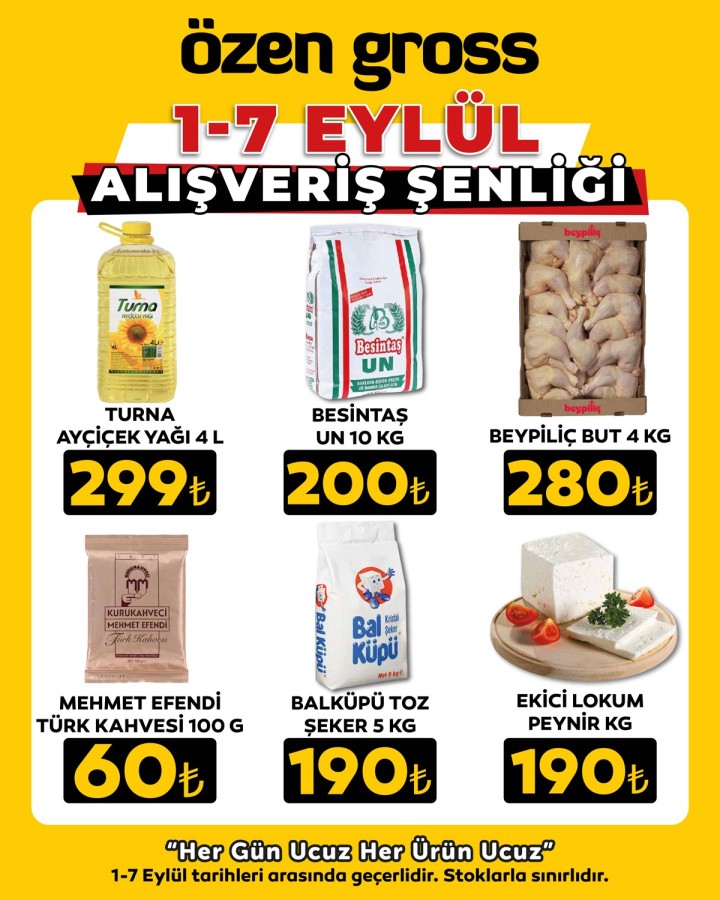 Bursa'nın en uygun fiyatlı gross market zincirlerinden Özen Gross, 1-7 Eylül tarihleri arasında düzenlediği "Alışveriş Şenliği" ile müşterilerine büyük fırsatlar sunuyor. Geniş ürün yelpazesi ve her gün düşük fiyat politikasıyla öne çıkan Özen Gross, Bursa ve Kütahya'daki mağazalarında kampanyalarını hız kesmeden sürdürüyor.