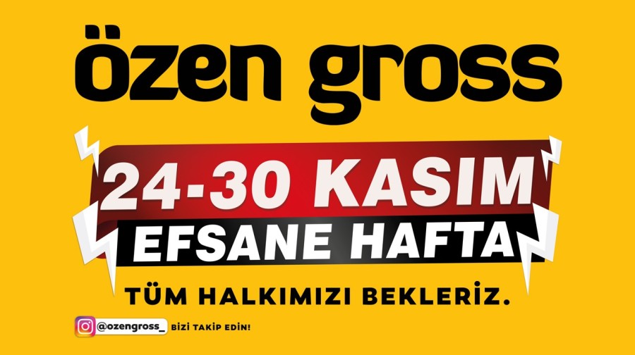 Bursa'nın lider uygun fiyatlı gross market zincirlerinden Özen Gross, "Efsane Hafta" kampanyasını 24-30 Kasım 2025 tarihleri arasında da sürdürüyor. Geniş ürün yelpazesi ve "Her Gün Ucuz, Her Ürün Ucuz" anlayışıyla tanınan Özen Gross, Bursa ve Kütahya'daki tüm mağazalarında müşterilerine kaçırılmayacak fırsatlar sunuyor.