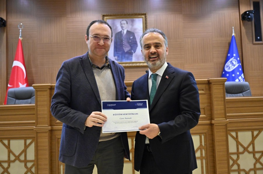 Bursa Büyükşehir Belediyesi'nin kurum içi eğitim faaliyetlerini başarıyla tamamlayan personel, düzenlenen törenle sertifikalarını aldı. Personele sertifikalarını bizzat kendi veren Bursa Büyükşehir Belediye Başkanı Alinur Aktaş, eğitim çalışmalarının aralıksız devam edeceğini vurguladı.