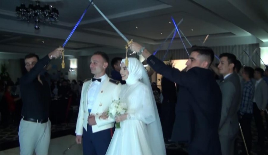 İzmir'de görevli Pilot Teğmen Ufuk Yılmaz, damatlık yerine askeri üniforma giydi. Genç çift, damadın pilot arkadaşlarının kılıçları altında salona girdi. Nikah merasiminde, nikah memurunun evlilik sorusuna sessizce "evet" diyen damadın davetliler bağırmasını istedi. Bunun üzerine damat, mikrofonsuz halde, tekrar "evet" diye bağırdı. Damadın pilot arkadaşlarının kılıçları altında nikahı kıyılan genç çift ilk danslarını yaptı.