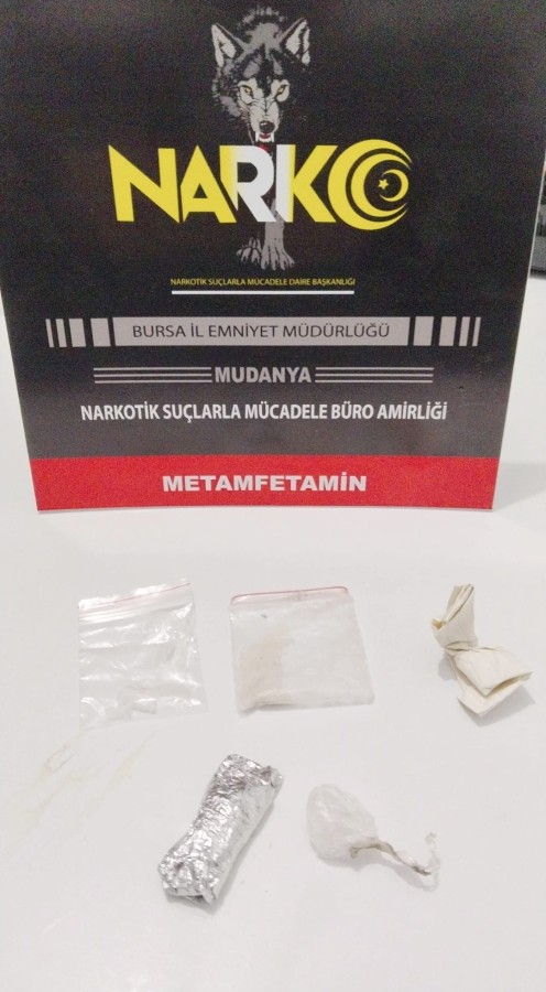 Mudanya Narkotik Suçlarla Mücadele Büro Amirliği Ekipleri iki şüpheliyi takibe aldı. Atatürk Caddesi üzerinde ilerleyen A.B.S. ile B.E.'yi yakalayan ekipler şüphelilerin üzerinde yaptıkları aramada 8.26 gram metamfetamin ele geçirdi.
