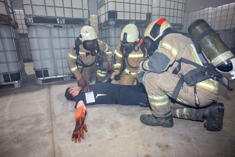 13 ülkeden 80 kişinin üzerinde yabancı uzman, 20 kurum katılımı, HAVELSAN ekibi, UMKE, Bursa Büyükşehir Belediyesi İtfaiye ve Akıllı Şehircilik Dairesi Başkanlıkları ile Burulaş ekiplerinin de katılımıyla 200'ü aşkın personelle kimyasal alan, yangın ve tren kazası tatbikatları gerçekleştirildi. Küçükbalıklı Afet Koordinasyon Merkezi'nde gerçekleştirilen kimyasal alan ve yangın tatbikatları gerçeği aratmazken, tren kazası tatbikatı ise adeta nefesleri kesti. Senaryo gereği metro, Nilüfer İstasyonu ile Odunluk İstasyonu arasındaki tünelden geçerken, deprem meydana geldi ve metro vagonu raylardan çıktı. Metrodaki yolculardan 21'i yaralanırken, olay yerine gelen ekipler, olaya son teknolojik donanımlarla müdahale etti. Müdahale ekipleri giyilebilir teknolojilerle donatılırken, ilk olarak olay yerine bir drone yönlendirildi. Olay yeri ve yaralı tespitleri öncelikle drone ile yapıldı. Bu tespitin ardından yürüyebilecek durumdaki yolcular, raylar üzerinde çıkış noktasına yönlendirilirken, müdahale ekipleri de vagona girerek içerideki yaralılarda durum tespiti yaptı. Bu tespit ekiplerin özel gözlükleri sayesinde kriz merkezinden de anlık takip edildi. Bu gözlem ve tespitlerin ardından da devreye UMKE ekipleri girdi. Yaralılara ilk müdahaleyi vagon içinde yapan ekipler, termal battaniyeye sardıkları yaralıları sedye ile raylar üzerinde istasyona kadar taşıdı. Yaklaşık 3 saat süren tatbikat, başarıyla tamamlandı.