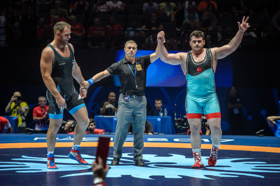 Dünya Grekoromen Güreş Şampiyonası'nda 130 kiloda yarışan Rıza Kayaalp, Estonyalı rakibi Heiki Nabi'yi 2-1 yenerek 3. kez Dünya Şampiyonu oldu.