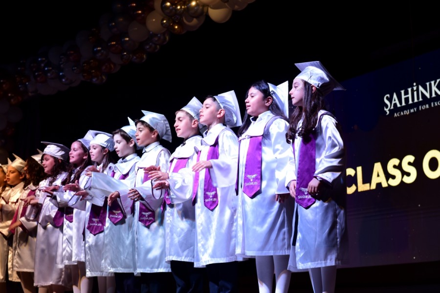 Şahinkaya Eğitim Kurumları'nda mezuniyet heyecanı, ilkokuldan ortaokula geçiş yapan 4. sınıf öğrencileriyle başladı. Academy Kampüs sahnesinde düzenlenen törende minik öğrenciler, ilkokul yıllarına veda etmenin gururunu ve ortaokula adım atmanın heyecanını bir arada yaşadı. Törende öğrenciler, diplomalarını Şahinkaya Eğitim Kurumları Onursal Başkanı Rasim Şahinkaya ile kıymetli öğretmenlerinin ellerinden aldılar. Törenin en unutulmaz anlarından biri ise çocukların keplerini hep birlikte havaya fırlatarak "ortaokula merhaba" demeleri oldu.